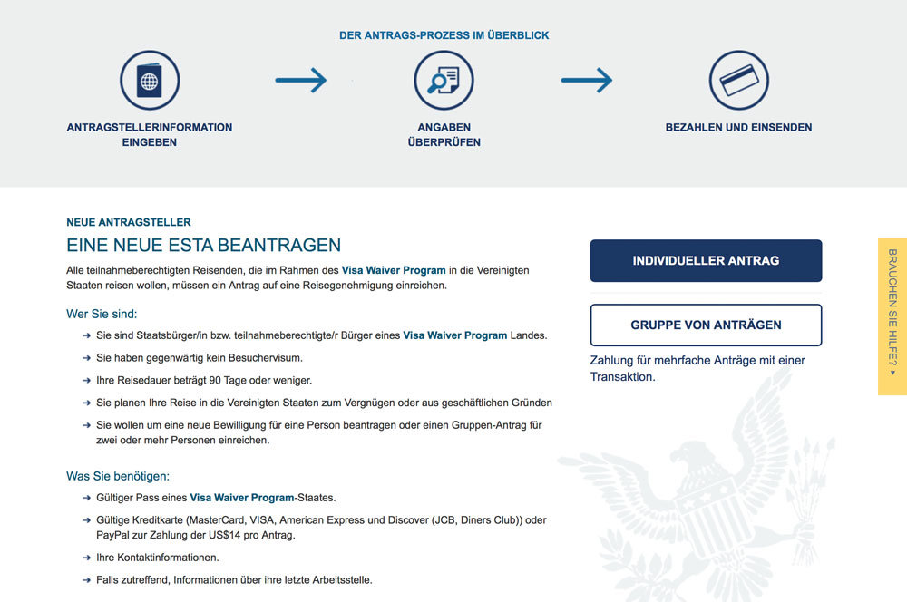 ESTA Online ausschliesslich auf der offiziellen US-Webseite erledigen!