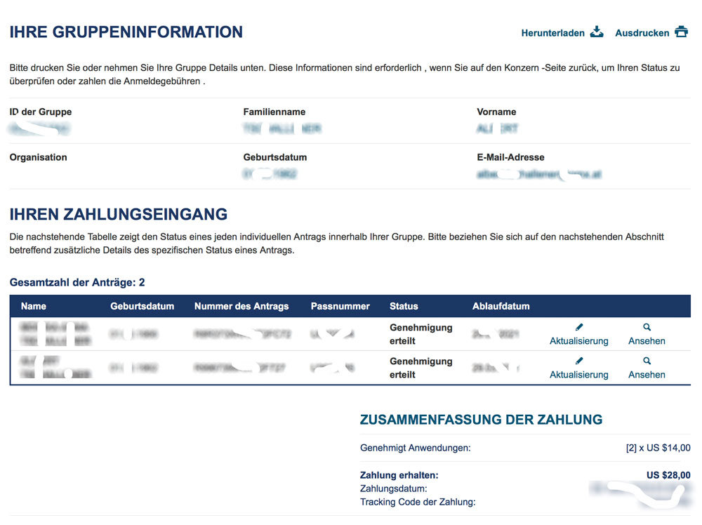 Für die Aktualisierung benötigen Sie die ESTA-Nr., das Geburtsdatum und die Reisepass-Nummer.